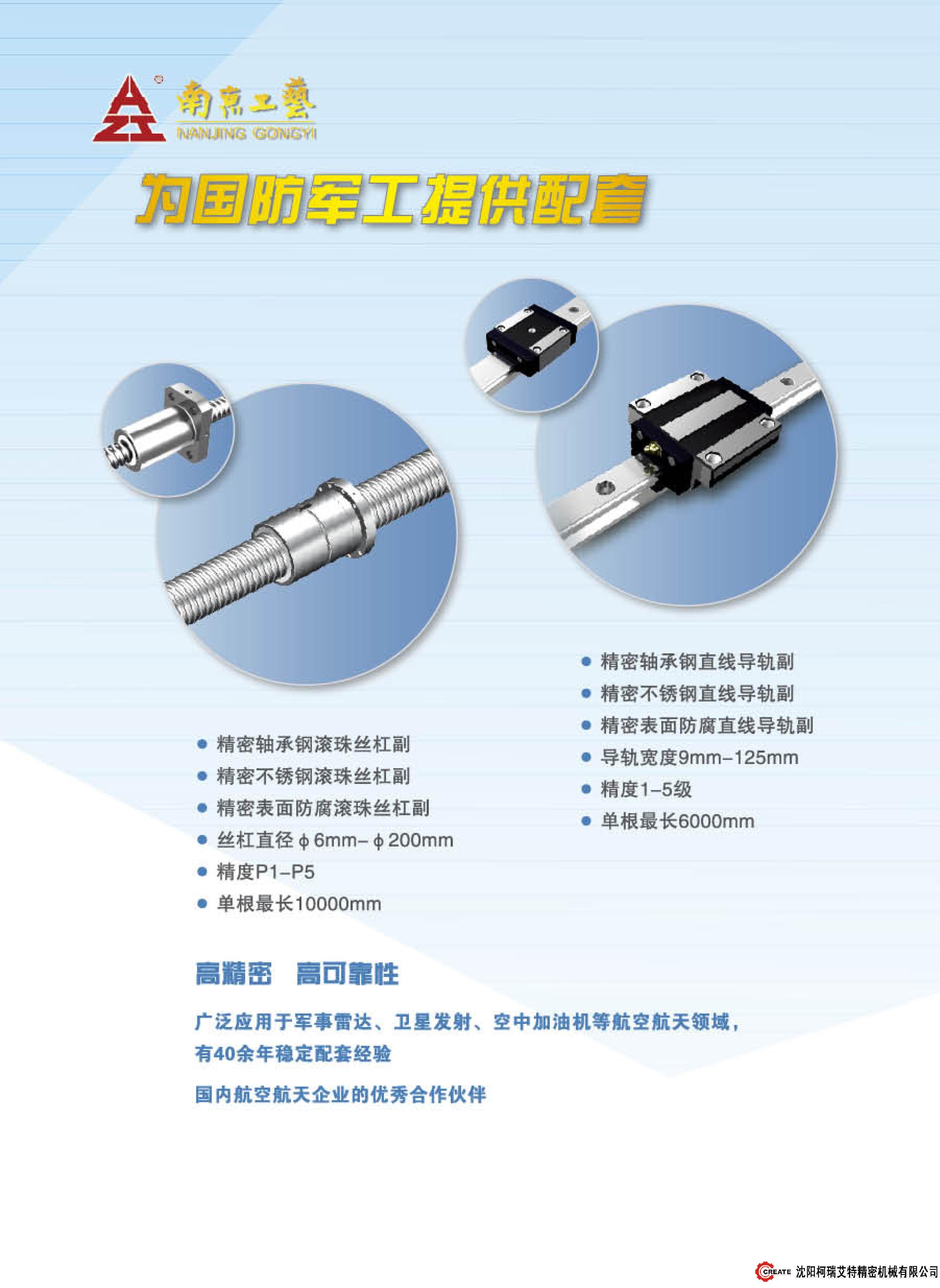 沈陽柯瑞艾特精密機械有限公司代理銷售南京工藝直線導軌、滾珠絲杠等產(chǎn)品,擁有多年專業(yè)經(jīng)驗,撥打電話咨詢訂購內(nèi)容024-22515196。