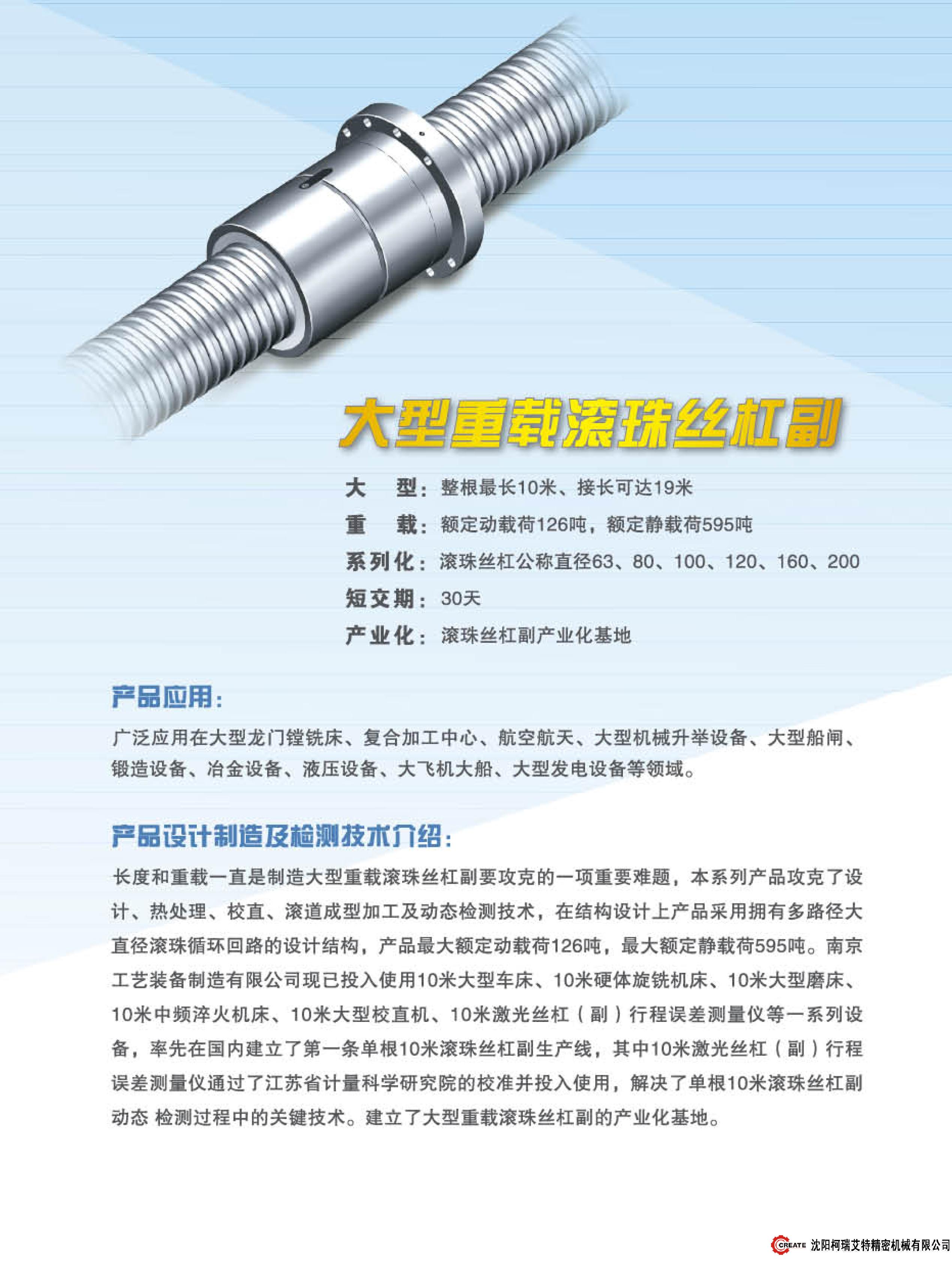 公司建有滾動功能部件全性能試驗室,高速滾珠絲杠副60m/min運行時噪音70dB,高速滾動直線導軌副60m/min運行時噪音68dB,為精密臥式加工中心批量配套滾珠絲杠副、滾動導軌副,實現(xiàn)各軸快移速度40m/min、定位精度0.002mm、重復定位精度0.001mm。公司構筑了完備的設備保障體系,建成了高精度滾珠絲杠副、大型滾珠絲杠副、滾動導軌副生產(chǎn)線。公司產(chǎn)品為高速、高精中高檔數(shù)控機床大批量配套,推進了國產(chǎn)滾動功能部件的提檔升級和替代進口。